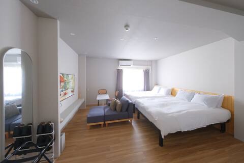 複数のベッドと、ゆったりとした居住空間を兼ね備えた、最も広い部屋。家族や仲間と集う中心となる。
